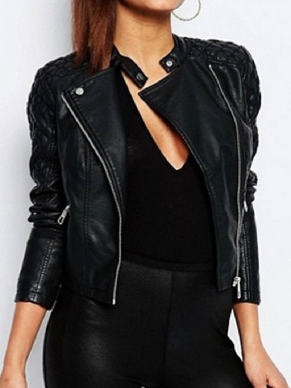 With its unique and extraordinary features – such as the asymmetrical zipper closure at the front, the beautiful embellishments with YKK zippers and buttons, and strategically placed side pockets for easy access – the ebony black biker jacket is guaranteed to fetch a ton of compliments every time you wear it outside.