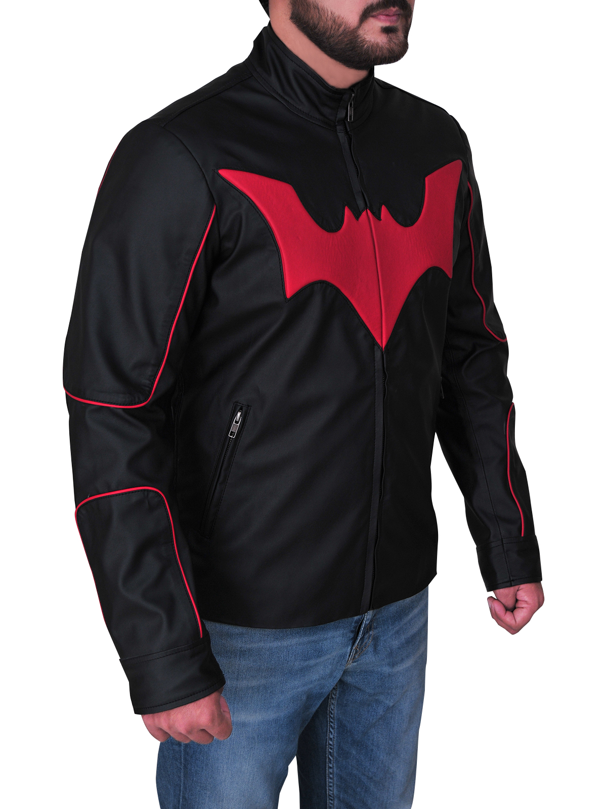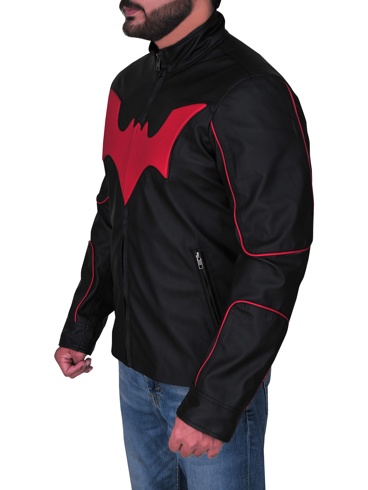 Batman past calfskin coat has front ykk marked zippered conclusion that fits in consummately with the style of this coat. This terry mcginnis cowhide coat has full length sleeves with zippered sleeves. There are two side abdomen pockets at the front of this batman cowhide coat. terry mcginnis coat has an exceptional style collar. The red batman logo at chest is looking wonderful.