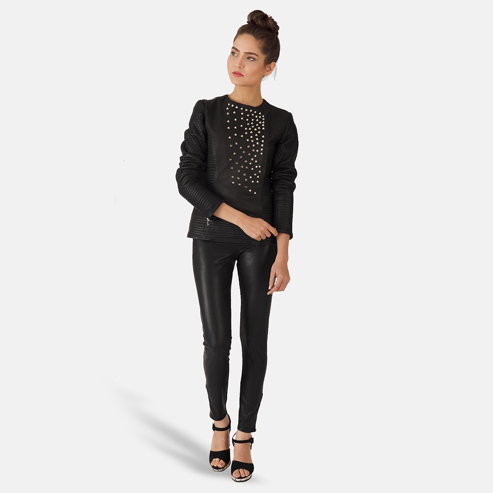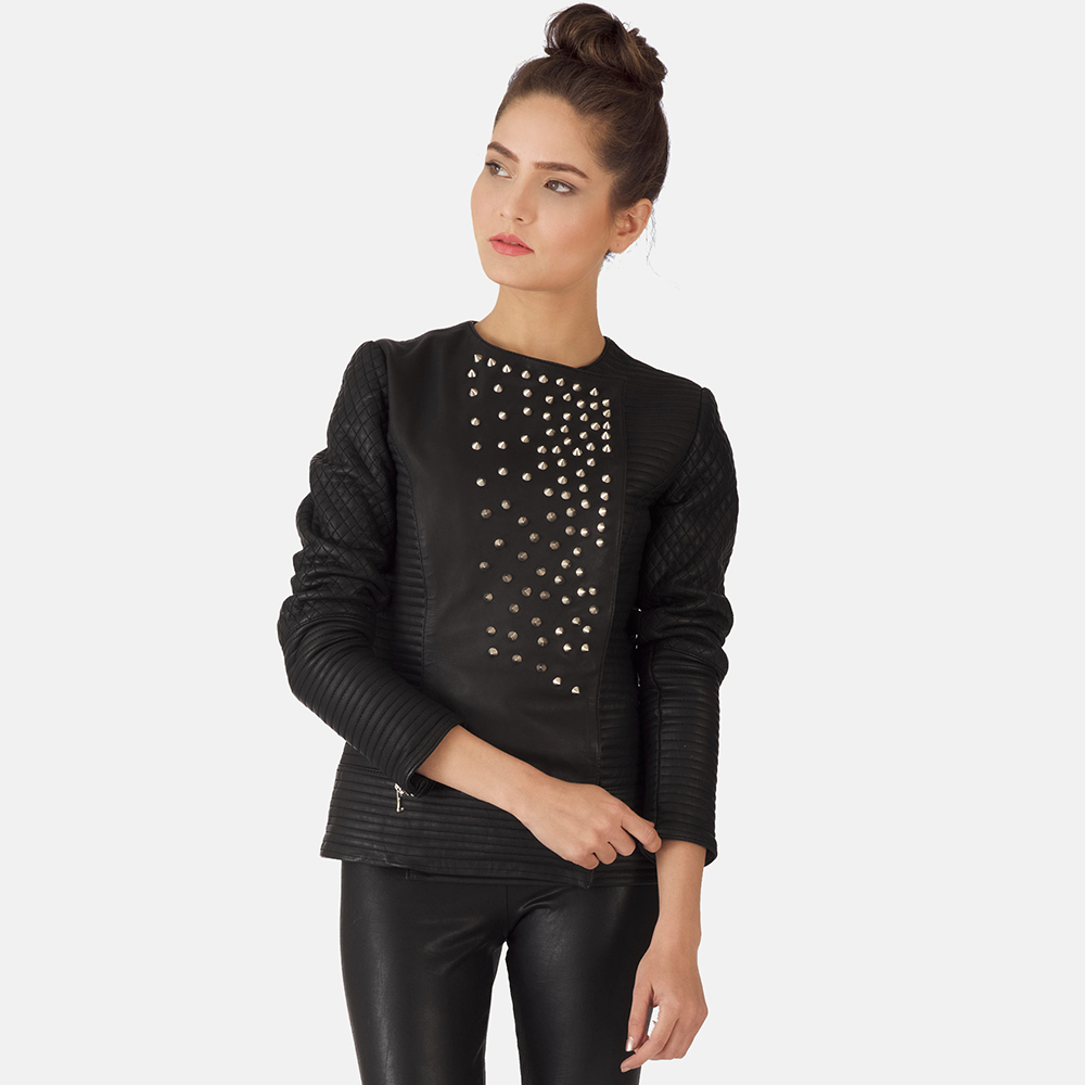 Celeste Studded Black Leather Jacket