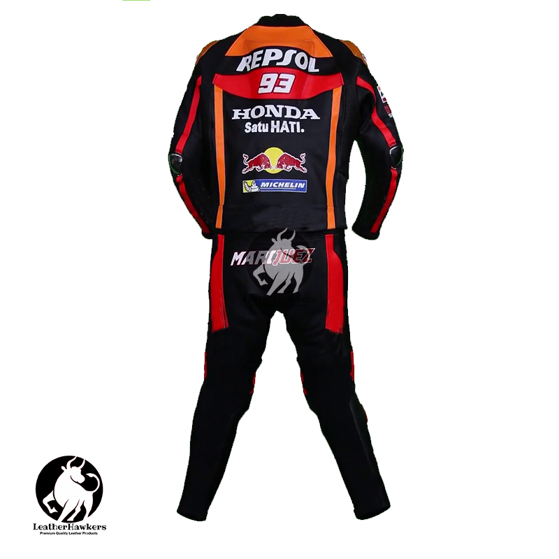 Marc Marquez 93 Honda Repsol Black Leather Suit 2017 is the most important thing while buying it. A blend of modern safety features with the latest demanding designs made from premium quality material leather suit at the best price is our commitment to the buyers. To achieve the customer’s satisfaction and meet their demand, we engineer our products so that the buyers can get their wishes materialized. We keep all the safety threats in mind while designing our products with no ignorance of the latest trends and designs prevailing in the market. Drive your bikes wherever you want but buying it from us will keep you connected. Safety Features: External CE approved Titanium protectors on Shoulders, Elbows and Back Armor – 5 hard-plastic CE approved Armors 1 half-inch tempered-form highly compressed back pad 2 flex plastic mold shoulder protections 2 flex plastic mold elbow protections Dual density spine protector Additional rubber padding for safety on critical parts The Design: 100% Genuine Cowhide Top Grain Leather (1.2mm – 1.3mm) External Titanium protectors on Shoulders & Elbows YKK Zipper throughout Removable dual density armor at shoulders and elbows Designing Facility Available for Men or Women in Tailor Made Custom Size Perforated Leather Panels High-quality Leather patching work Available in all sizes, XS, S, M, L, XL, XXL, XXXL, XXXXL, AND XXXXXL: Return and Exchange We work for customer satisfaction and try to serve them the best. Size charts are available with detailed information for measuring your size. Our return policy just for 14 days but make sure the item should not be used. Shipping Details: The item will be posted within 05 working days after payment is made. It will take another 5 to 10 working days to be delivered via courier. We do ship worldwide Shipping is done from our factory overseas directly to customers worldwide. Note: 4XL SIZE CHARGE MORE $40 5XL SIZE $50.