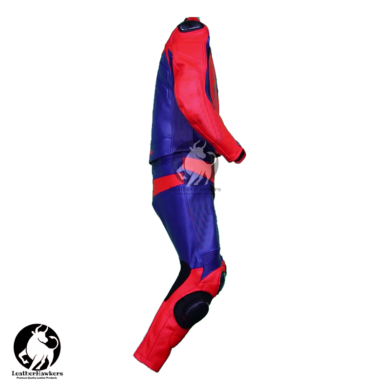 SPIDERMAN Motorbike Racing Leather Suit  is especially designed for professional bikers to fulfill their biking passion on track with great safety. This suit features excellent design & comfort, 100% genuine COWHIDE leather, Approved internal & external Protectors on Knee, Shoulder, Elbows and Back, YKK Zippers for Performance, Outer Knee sliders for performance. Full ventilated Chest to keep the biker cool while riding (Optional). Available in Men’s Fitting and Women’s Fitting. Available in all sizes, XS,S,M,L,XL,XXL,XXXL & Custom Size.