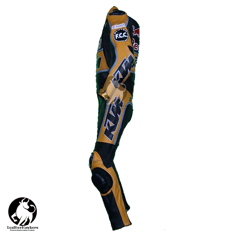 - KTM suit is made from selected top grain leather that is especially processed and drum dyed for excellent abrasion resistance and durability.